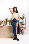 Blue Dual Bloom Midi Skirt