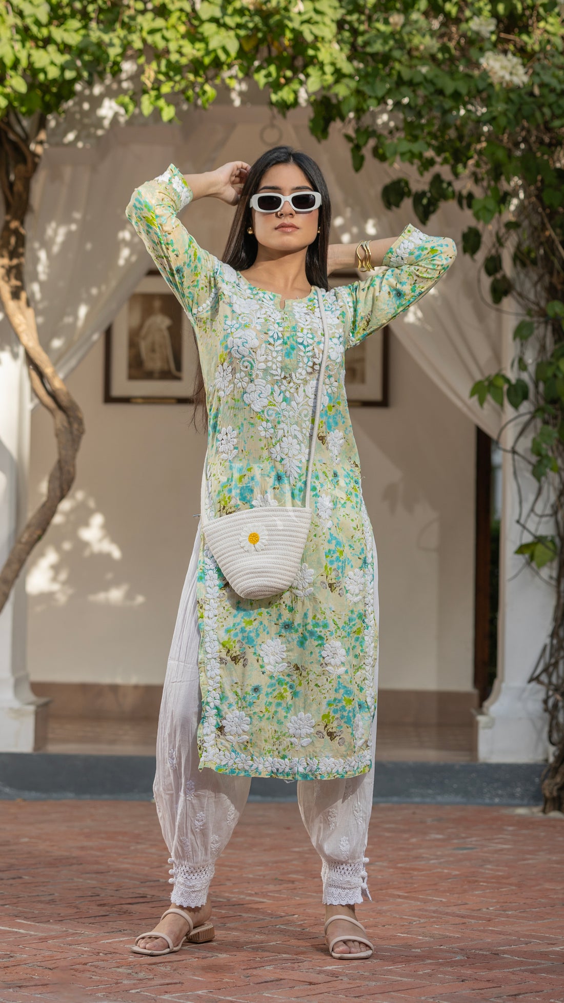Introducing our cotton mul printed non-transparent kurta, a delightful addition to your wardrobe. Its long,...